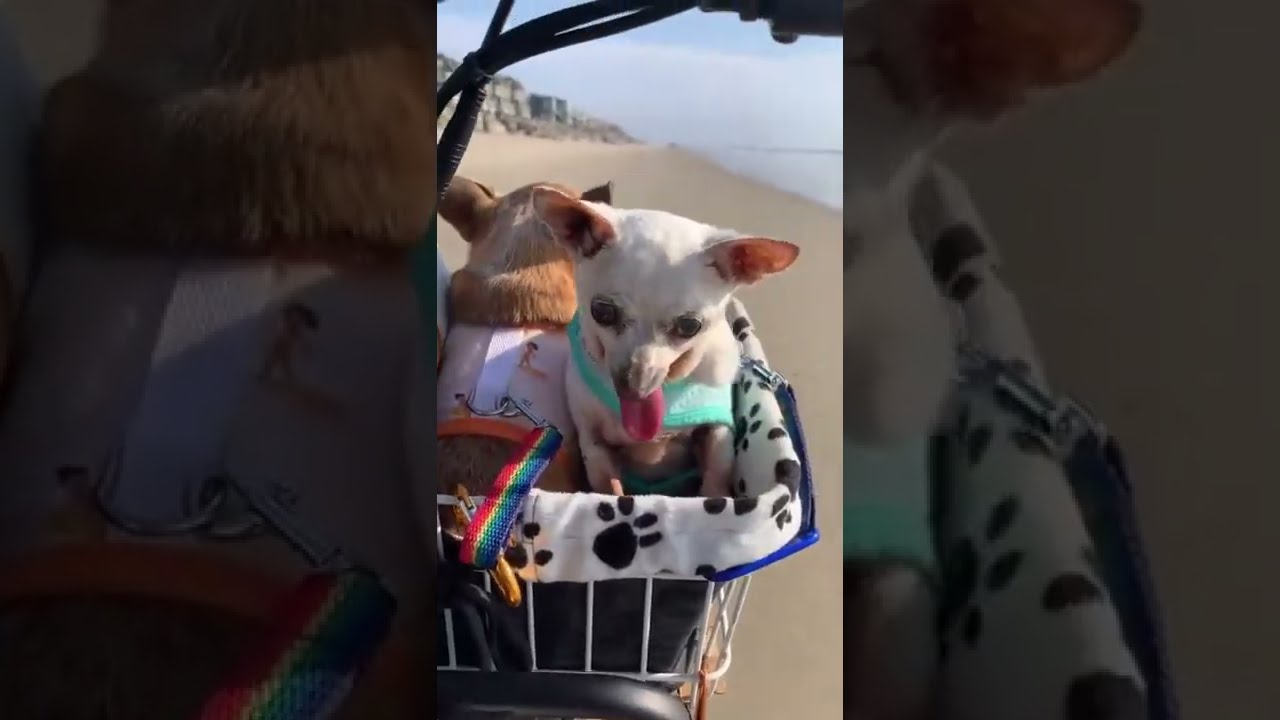 Cute rescue chihuahuas get VIP bike ride to the beach!