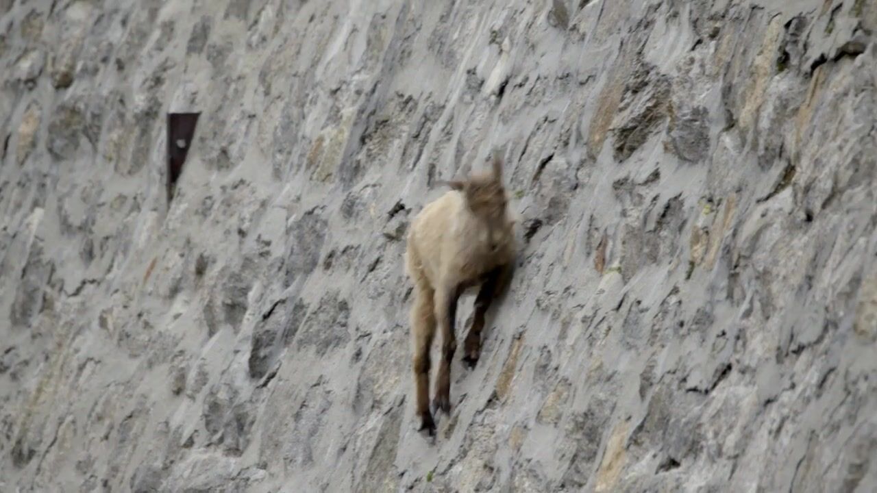 the incredible ibex climbs a dam